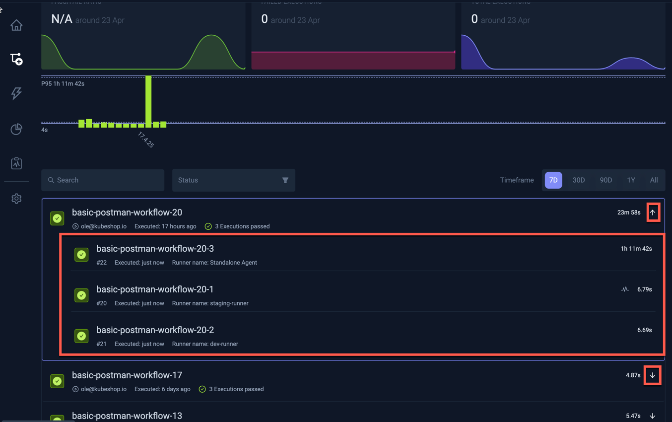 Use the arrow at the top right of this section to expand/collapse the contained executions.